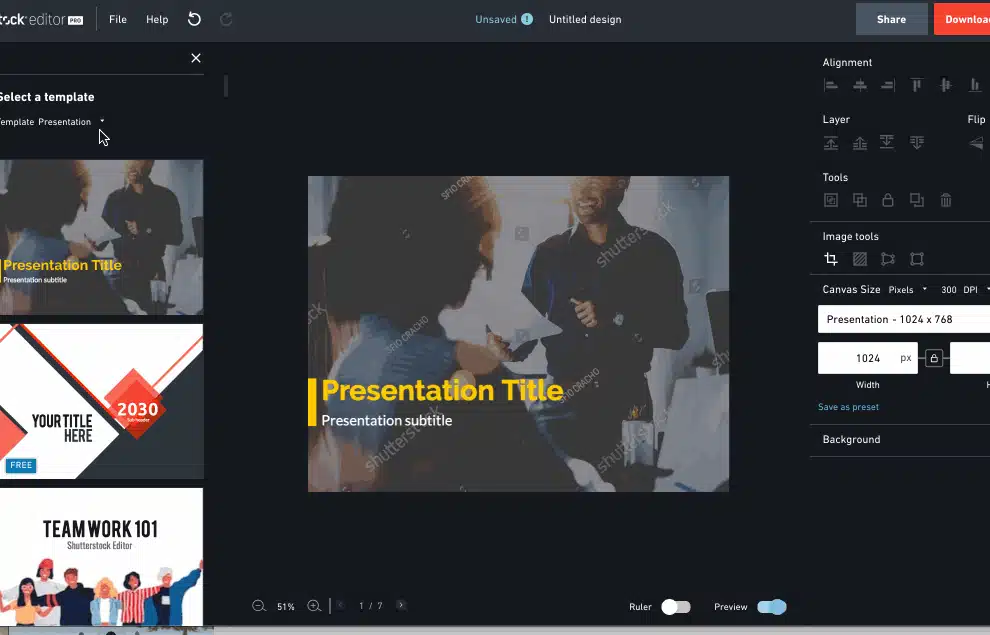 - eine Suchmaschine, die passende Bilder anzeigt, die leicht in das Vorlagendesign integriert werden können