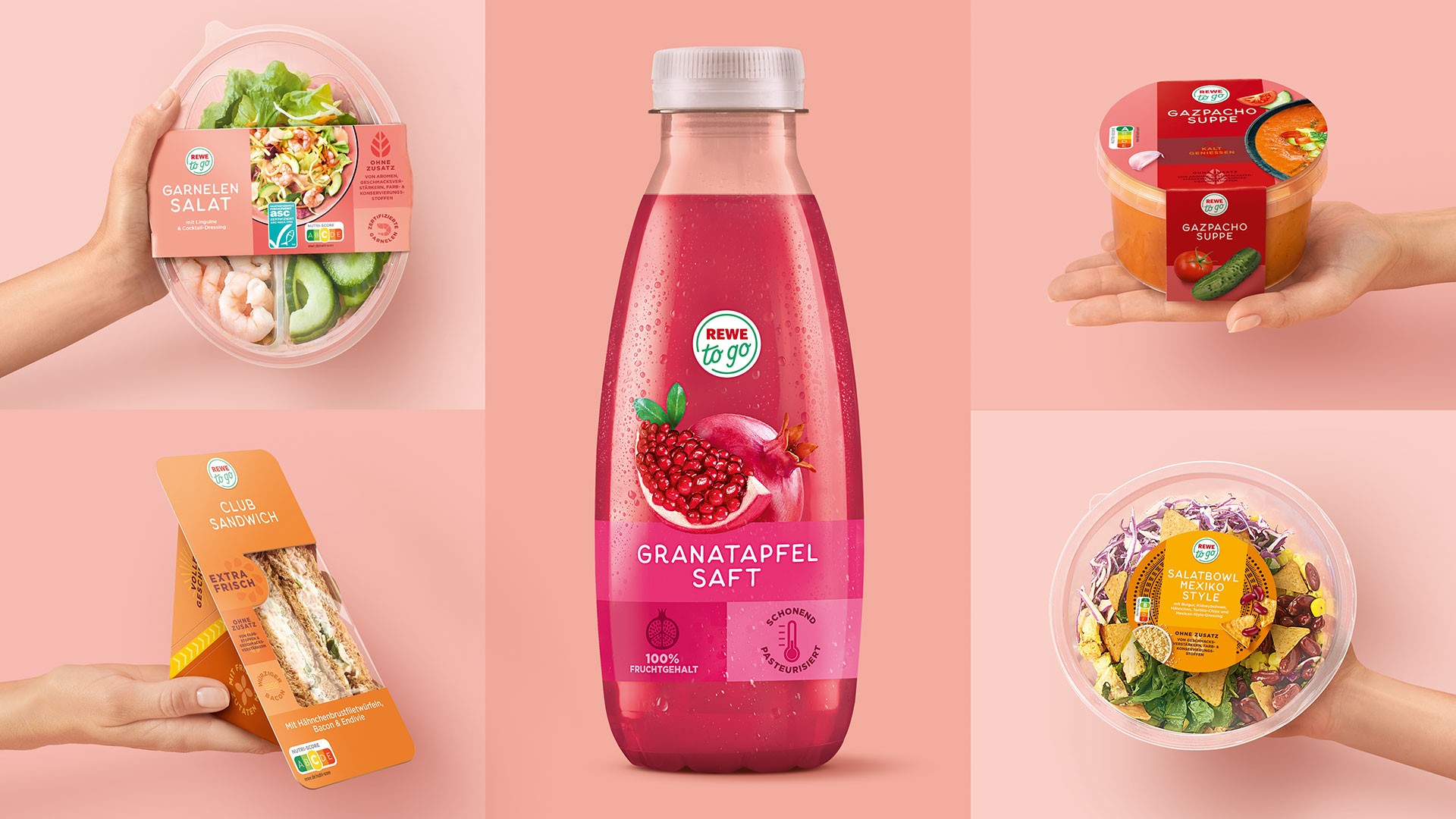Das Portfolio umfasst dabei die gesamte Bandbreite des REWE to go Sortiments: von Snacks über proteinreiche Mahlzeiten bis zu veganen Fertiggerichten – jede Kategorie mit spezifischer gestalterischer Adaption innerhalb des übergreifenden Systems.
