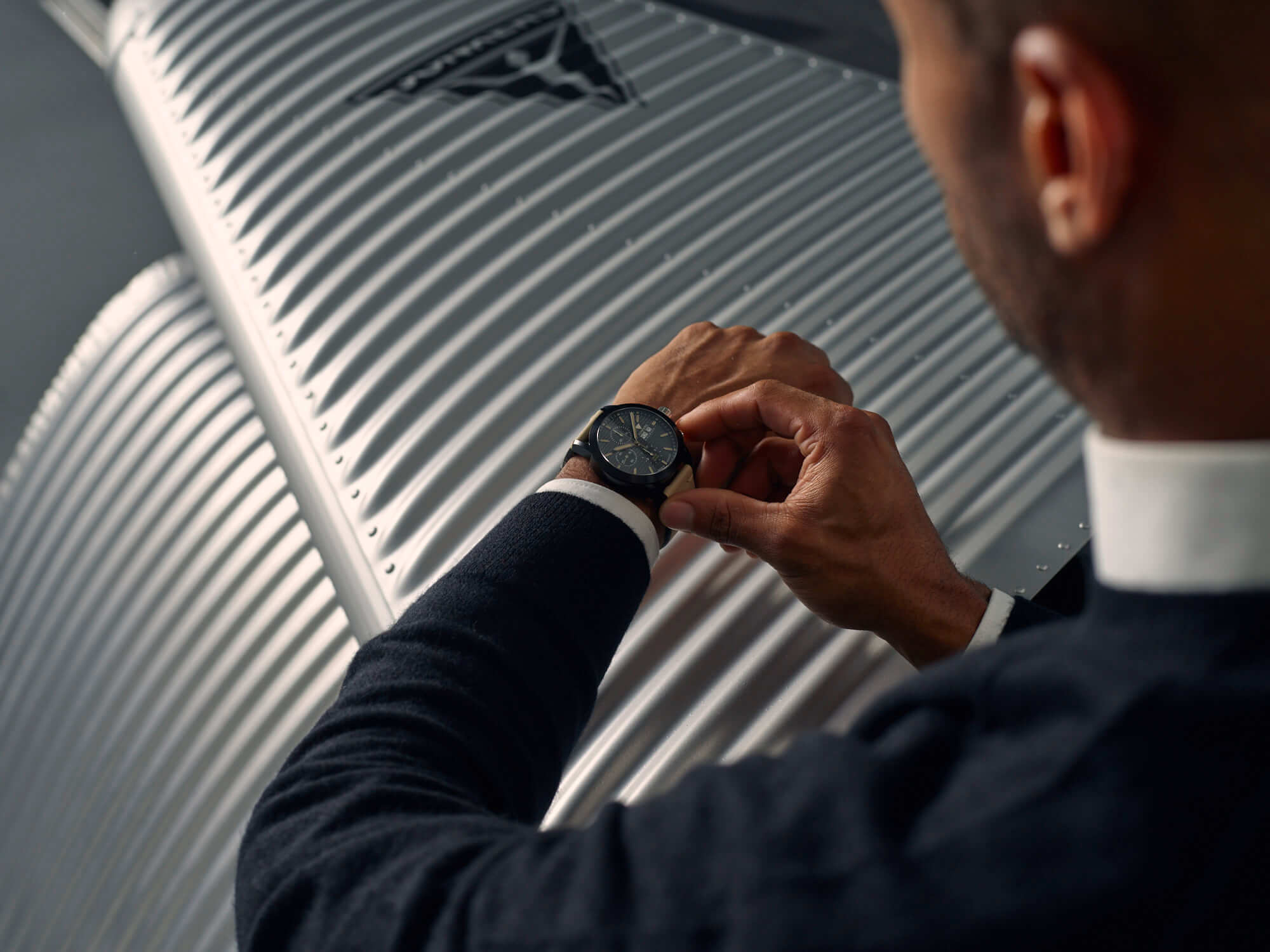 Das Kampagnenmotto bringt auf den Punkt, was Junkers Aircraft auszeichnet: Die Manufaktur verbindet Flugzeug- und Uhrenbau unter einem Dach. Der neue Chronograph entsteht aus demselben Flugzeugaluminium der 6000er-Serie, das auch in den legendären Modellen A50 und A60 zum Einsatz kommt. Diese physische Verbindung zwischen beiden Produktlinien ist branchenweit einzigartig.