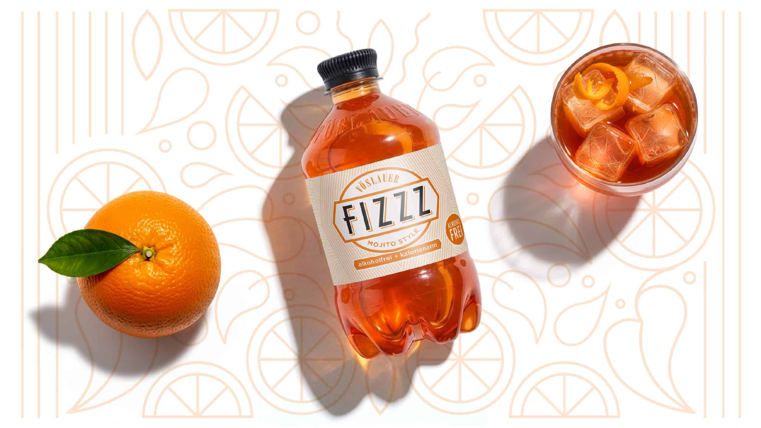 Kräftige, sortentypische Farben helfen Konsumentinnen und Konsumenten dabei, die verschiedenen FIZZZ-Geschmacksrichtungen bereits aus der Distanz zu erkennen. Unterstützende Bildwelten – Zitrusfrüchte, Minze, Orange und Eis – unterstreichen dezent das Aperitif-Erlebnis, ohne das Design zu überfrachten.